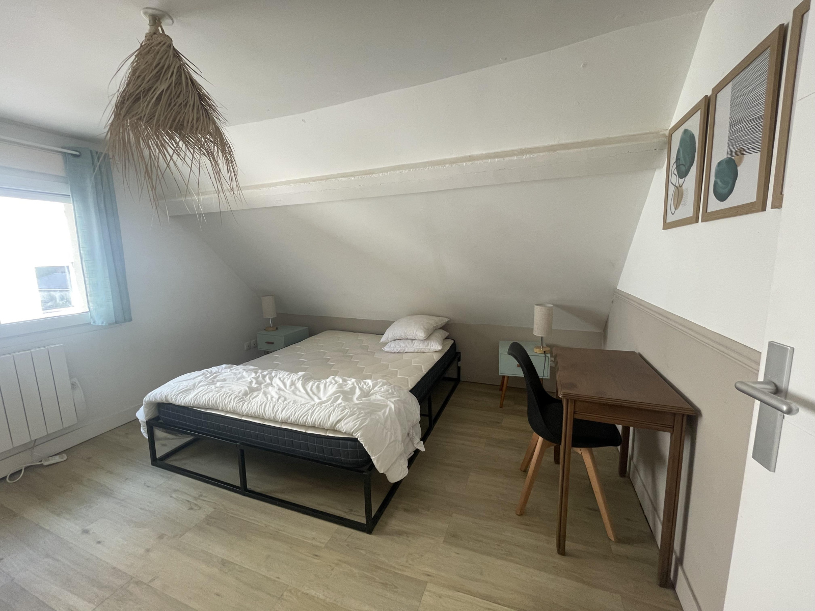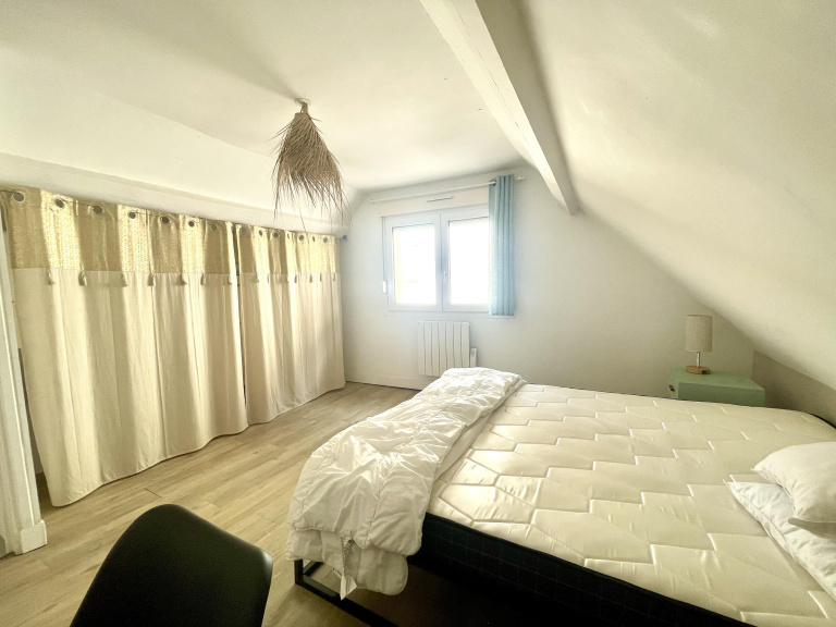 A l'étage, chambre avec penderie.