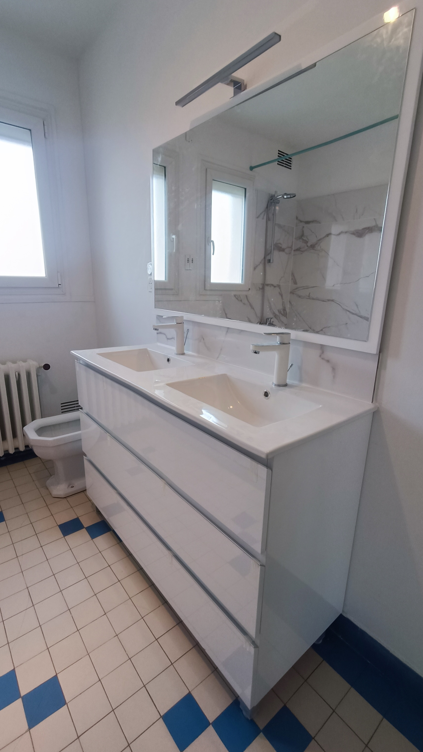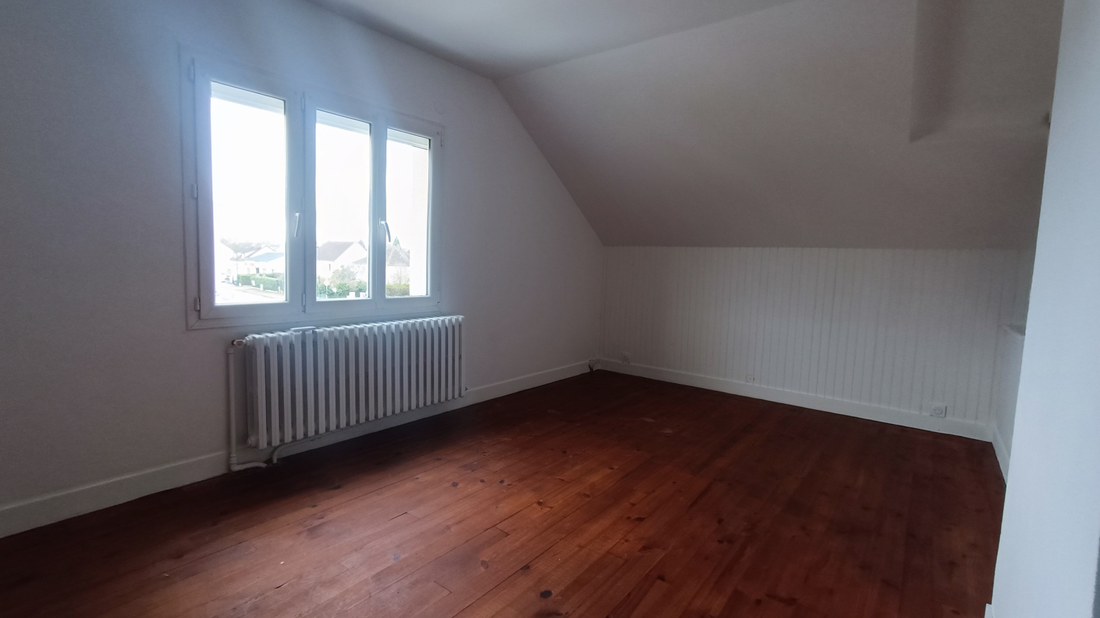 A l'étage: un immense palier, deux chambres, une salle d'eau avec WC.