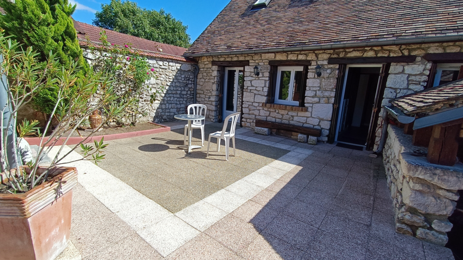 A l'extérieur un jardin, une dépendance pouvant servir de chambre pour un ado. De plus une immense cave à disposition.