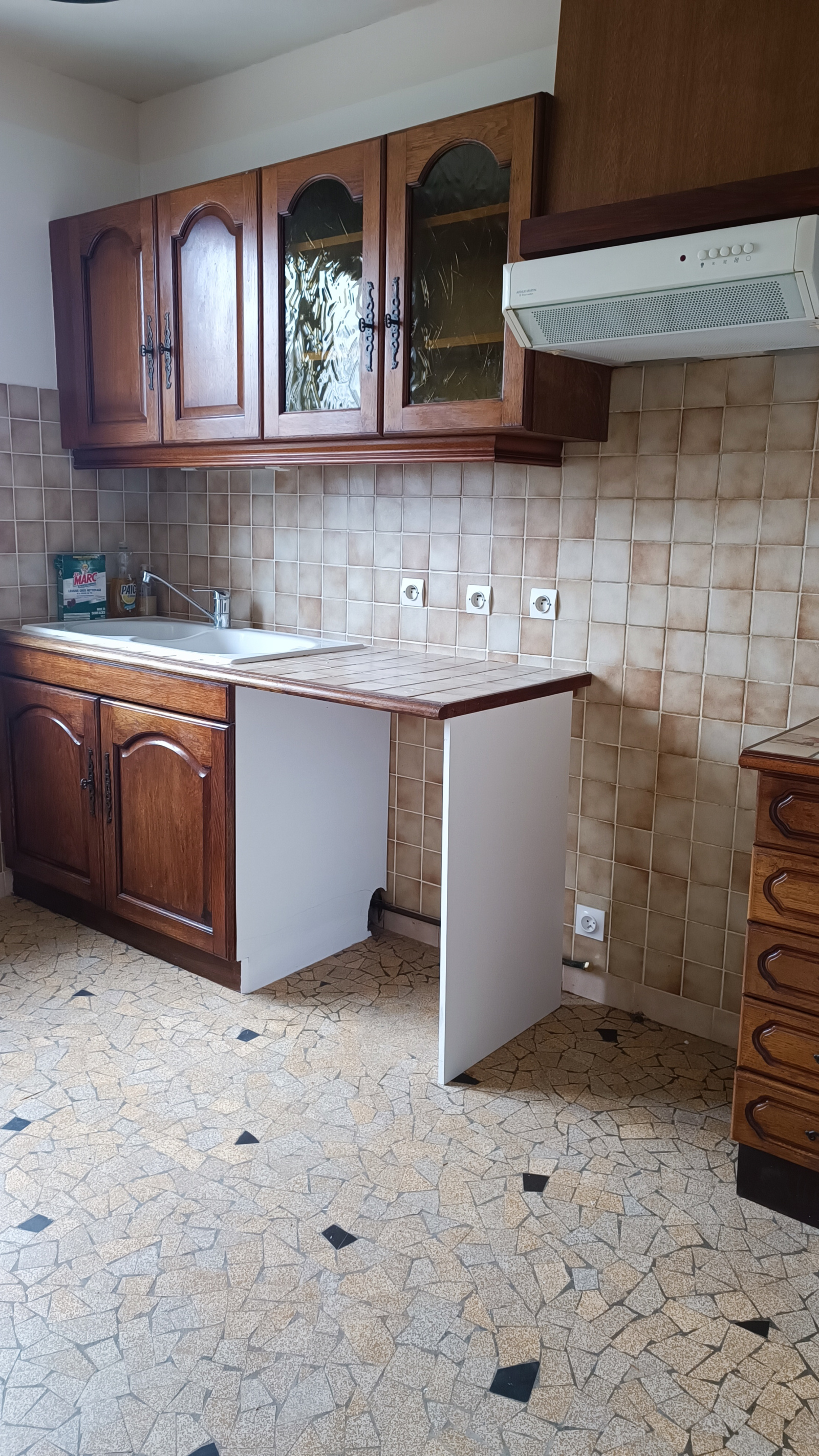 La maison se compose d'une véranda, une entrée, une cuisine séparée semi-équipée, deux chambres, un séjour, un salon, un WC.