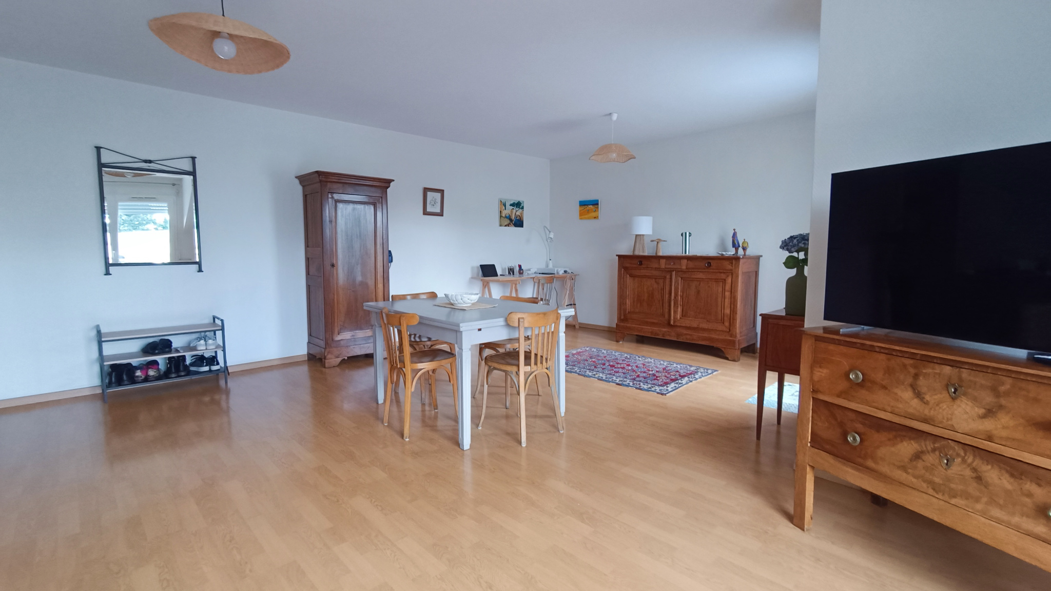 Entrée, cuisine séparée semi-équipée, un spacieux salon/séjour avec balcon, deux chambres, une salle de bain et un WC.