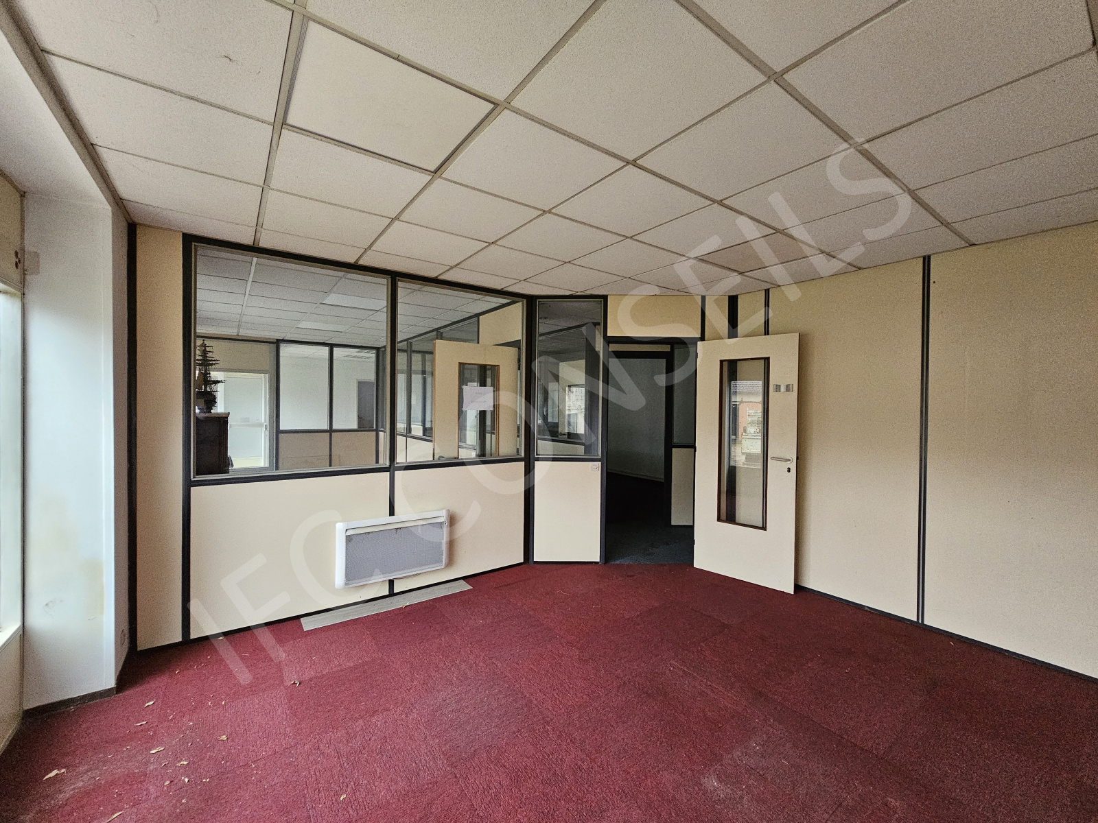 fameux quai de chargement, à droite, une pièce sanitaire avec wc homme et femme et une douche ainsi que 4 bureaux dont une