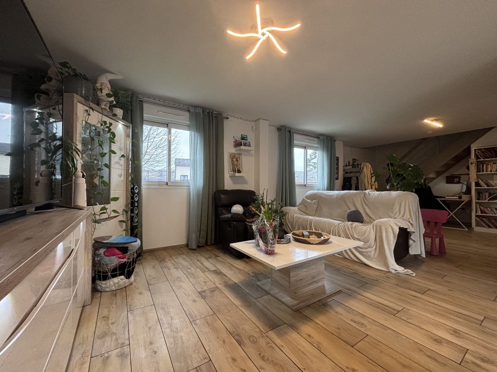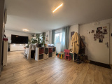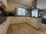 Entrée sur pièce de vie avec cuisine aménagée et équipée de 50 m2, un cellier/buanderie, et un wc avec lave main.