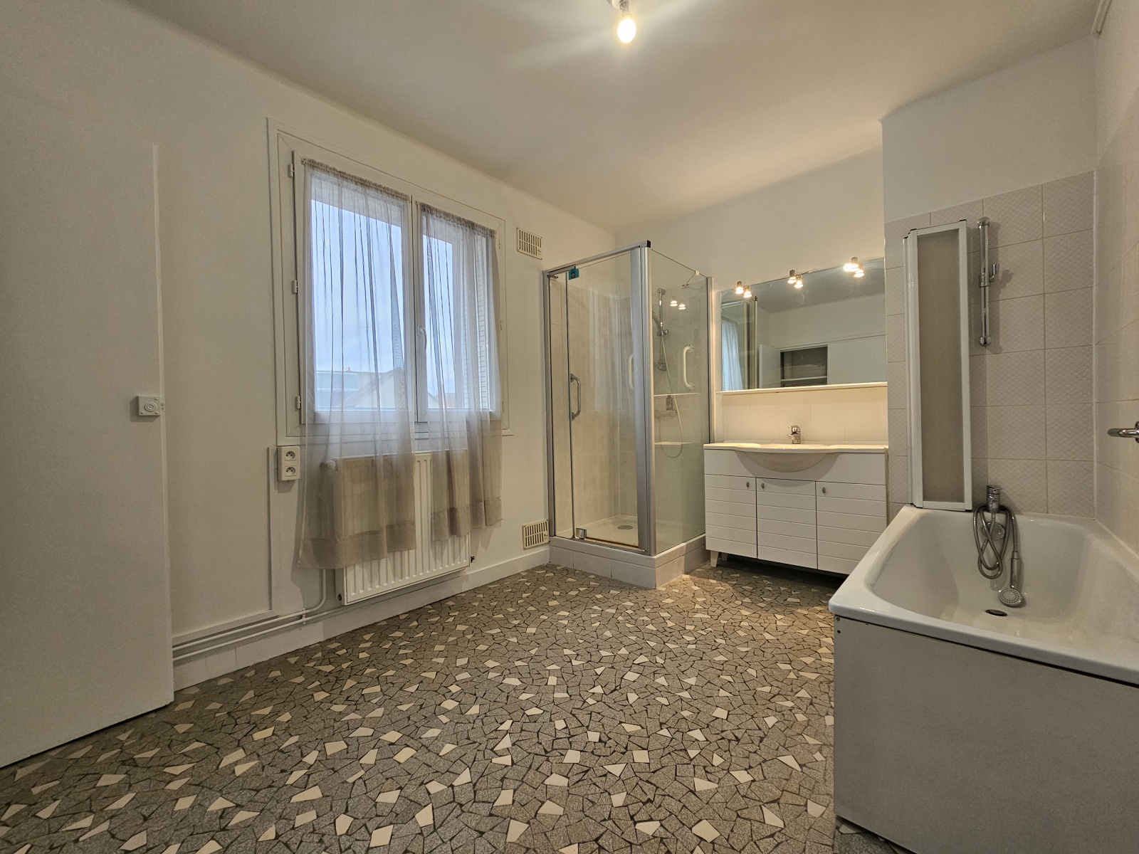 Chauffage centrale gaz de ville et ballon d’eau chaude électrique dernière génération (chauffe rapide), double vitrage PVC, tableau électrique neuf, tout à l’égout,