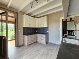 Venez découvrir les 110 m² de cette maison composées de la manière suivante : une entrée desservant un beau séjour avec ces poutres apparantes et sa cheminée insert, une cuisine aménagée récente