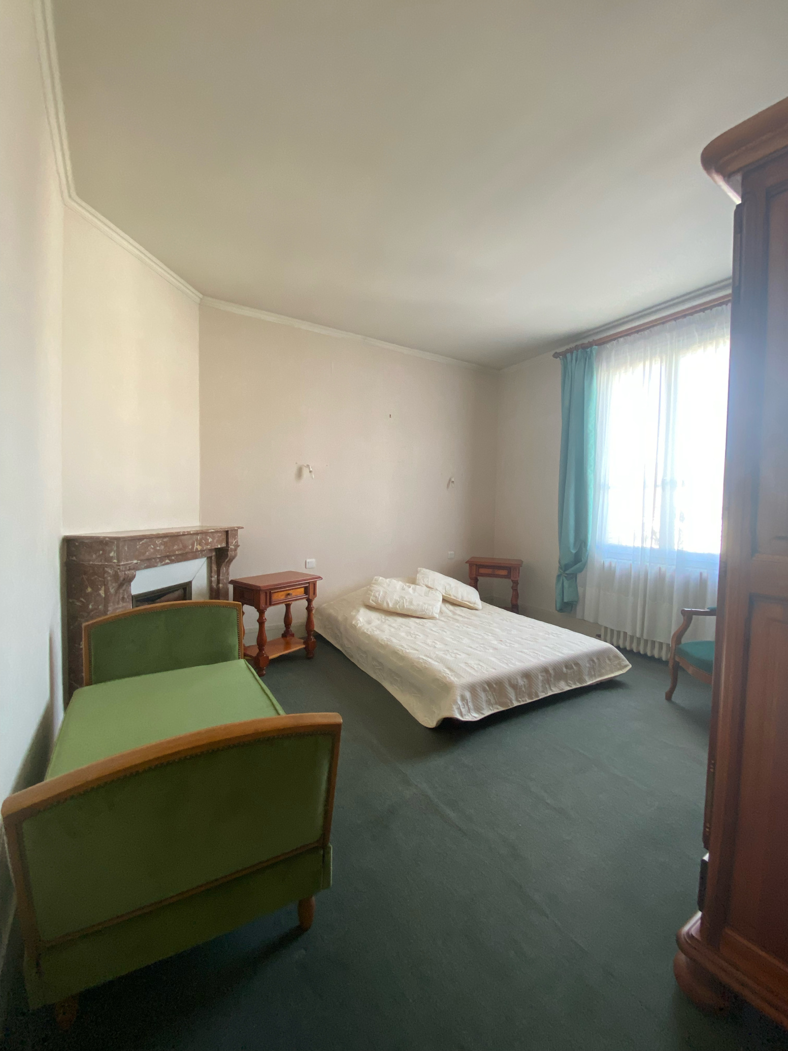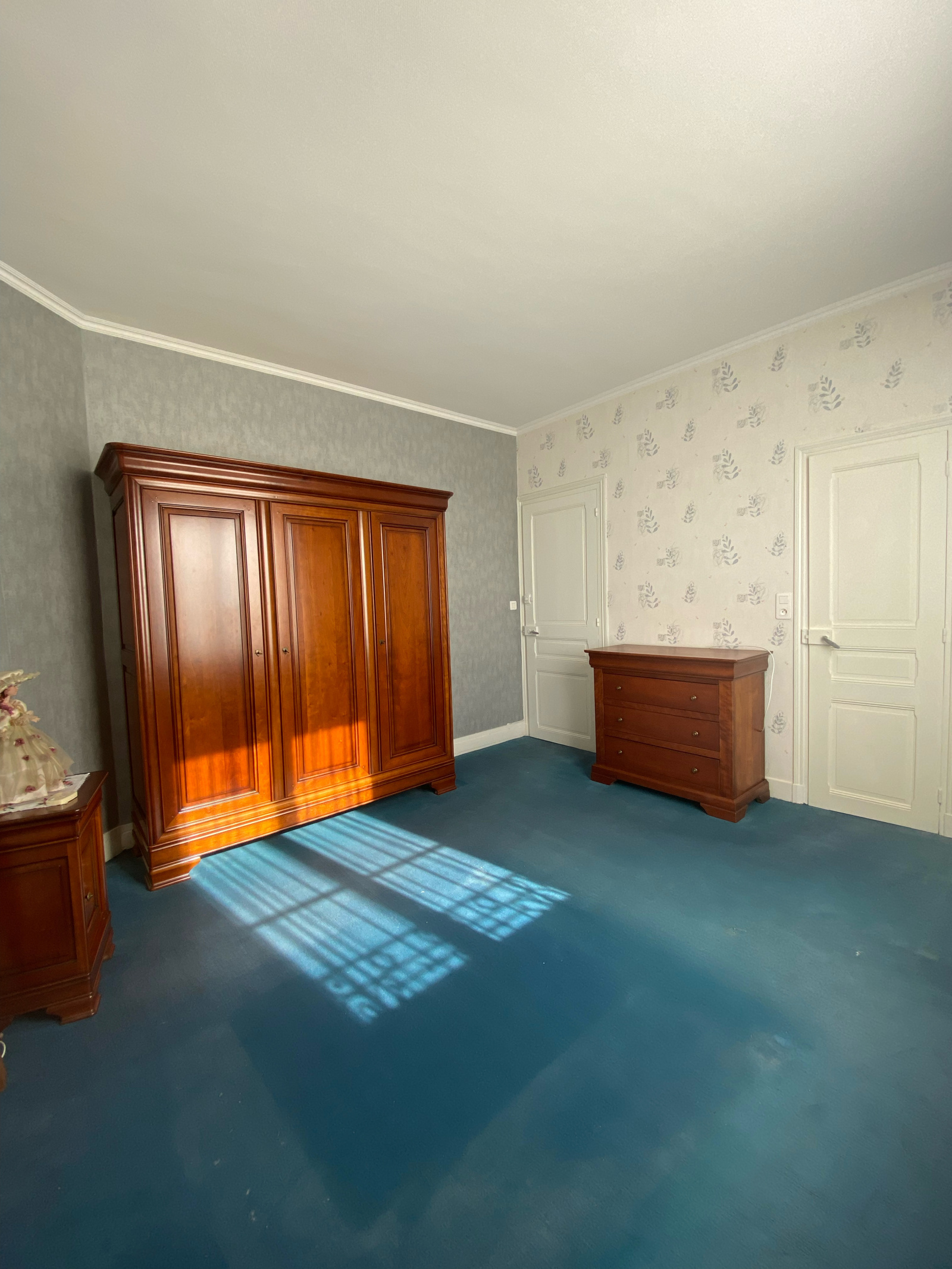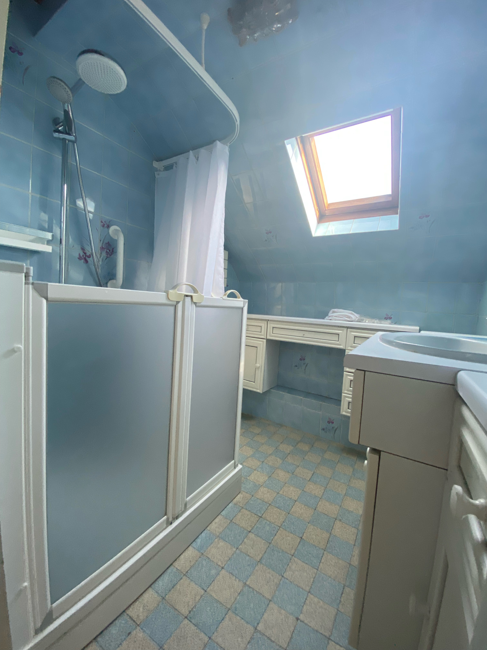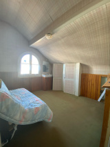 À l’étage, un large palier dessert une salle d’eau, un bureau et deux chambres, dont une avec WC. Maison bien entretenue.