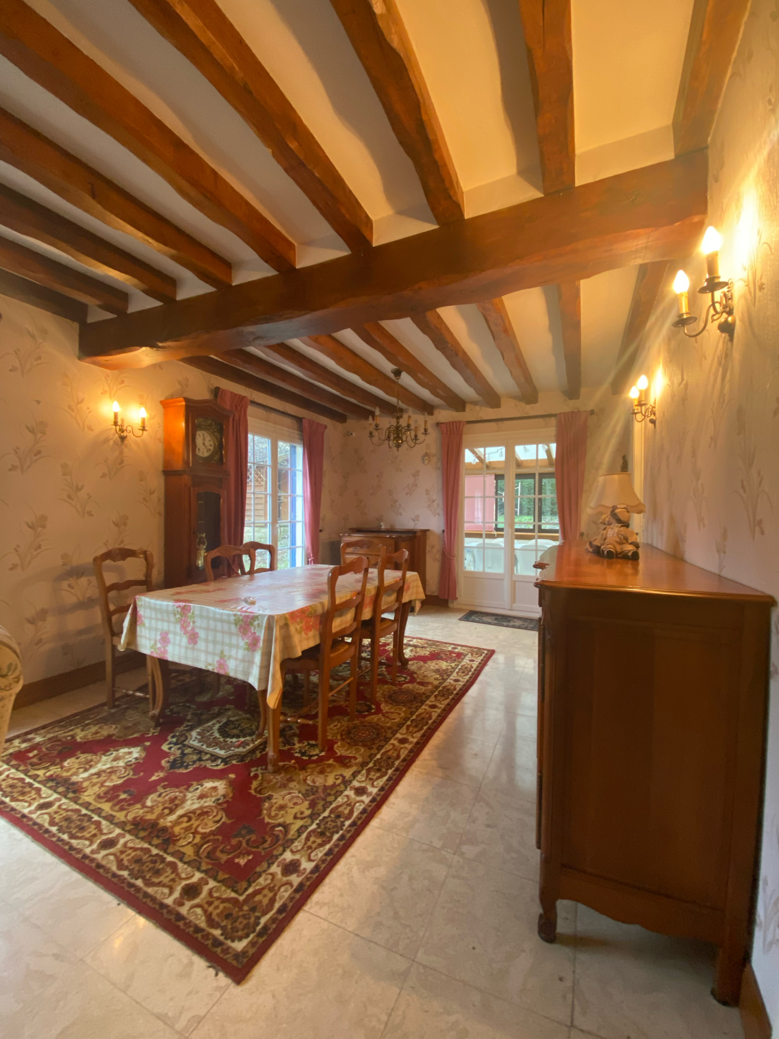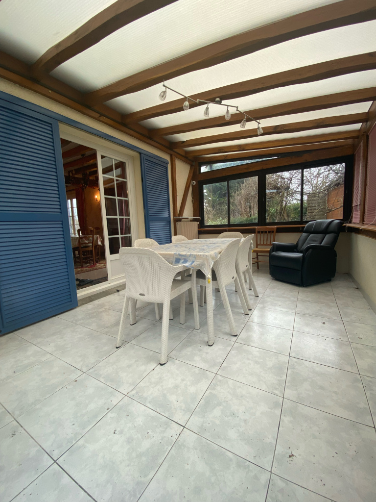 une très grande et lumineuse pièce de vie ouvrant sur une véranda 4 saisons de 12 m², un WC indépendant ainsi qu’une salle d’eau.