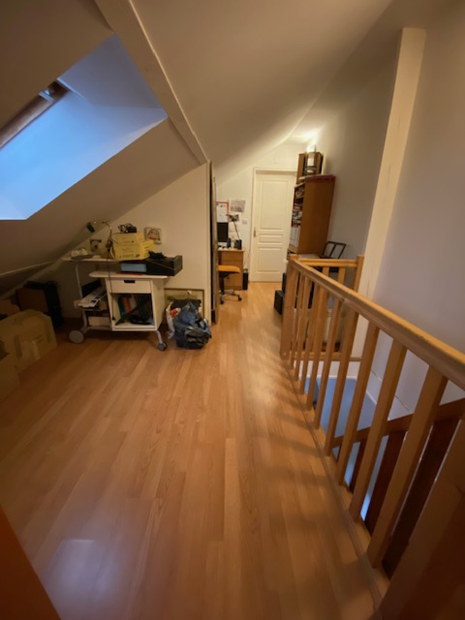 Deuxième étage : palier pouvant servir de coin bureau ou salle de jeux, menant à une vaste chambre.