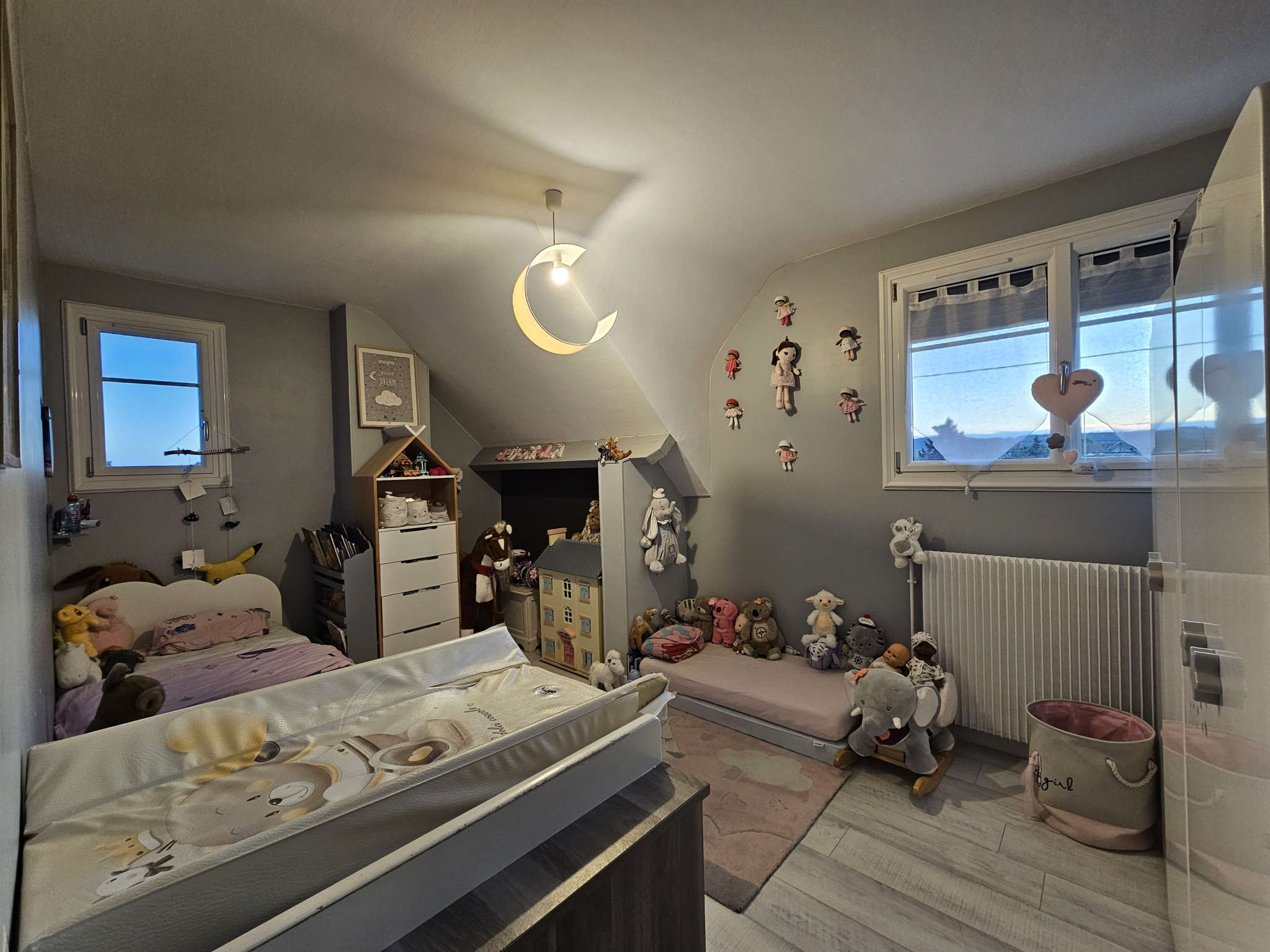 Double vitrage PVC oscillo-battant, Chauffage centrale par chaudière avec production d'eau chaude, Porte de garage sectionnelle isolée, adoucisseur/osmoseur neuf,