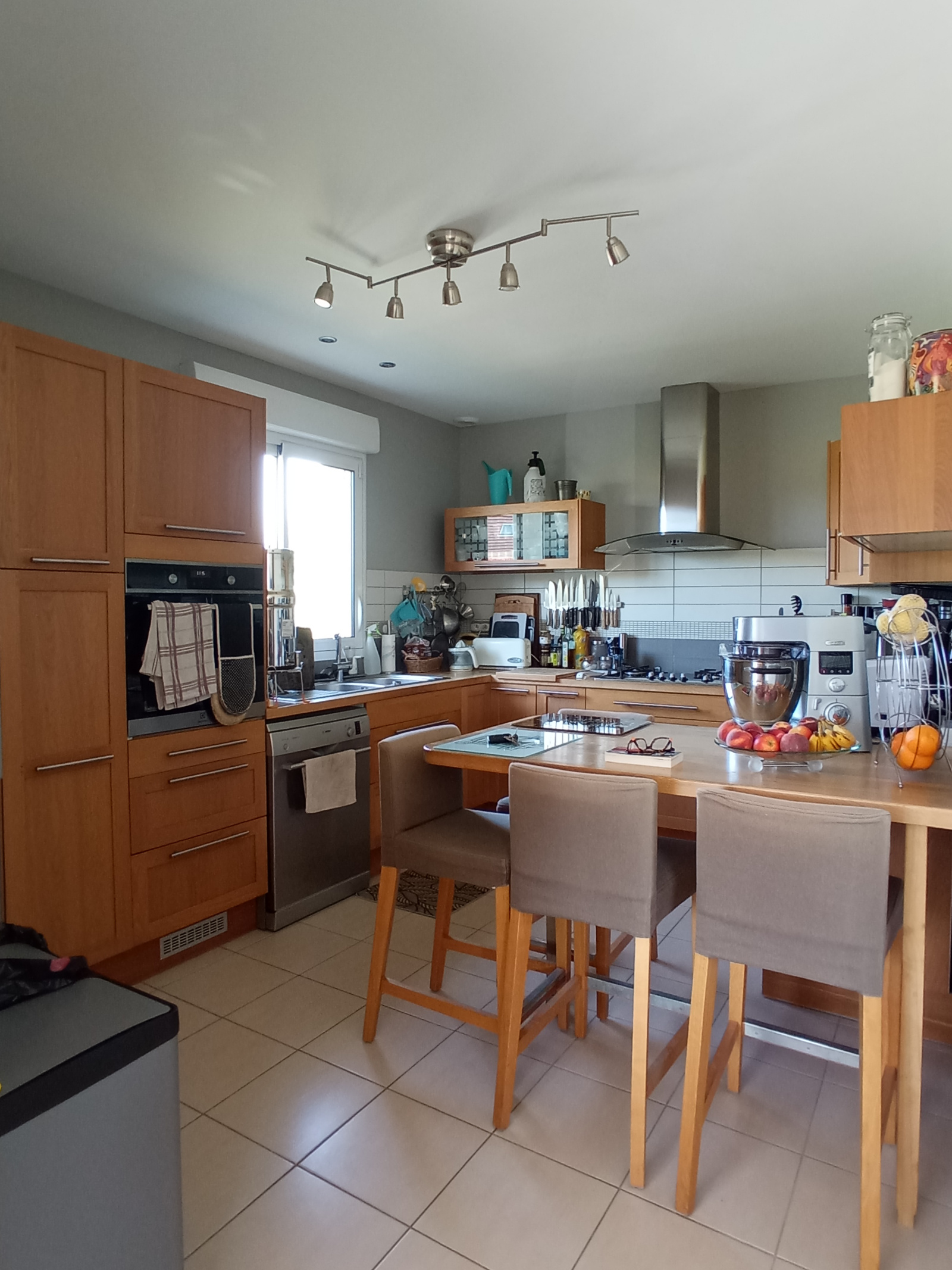 AU REZ-DE-CHAUSSEE : ENTREE AVEC PLACARD, CUISINE AMENAGEE ET EQUIPEE OUVERTE EN PARTIE SUR LE SEJOUR / SALON (ENVIRON 39 M²), DEGAGEMENT DESSERVANT 2 CHAMBRES AVEC PLACARDS, SALLE DE BAINS ET DOUCHE, WC, LINGERIE DONNANT ACCES AU GARAGE ;