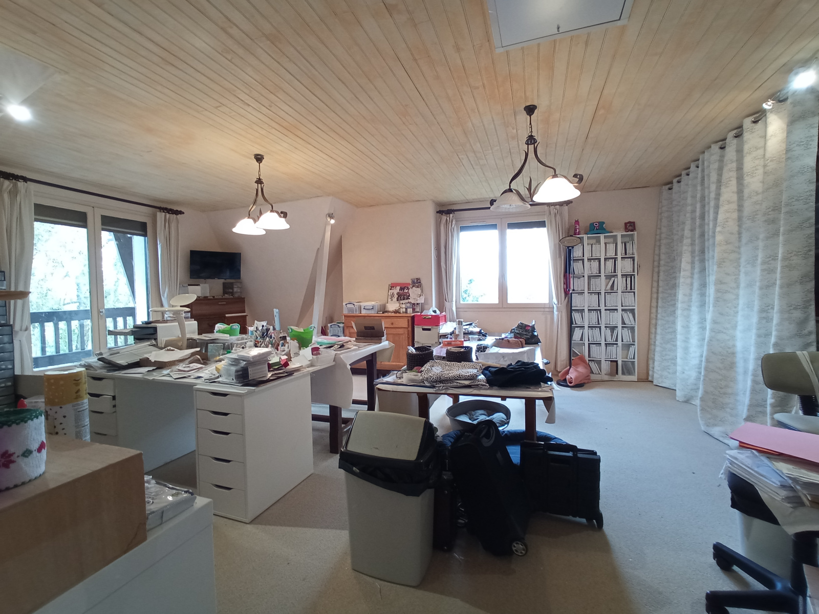 A L'ETAGE : PIECE PALIERE, SALLE DE JEUX OU CHAMBRE AVEC BALCON / TERRASSE, 2 CHAMBRES, SALLE DE BAINS, WC AVEC LAVE-MAINS ;