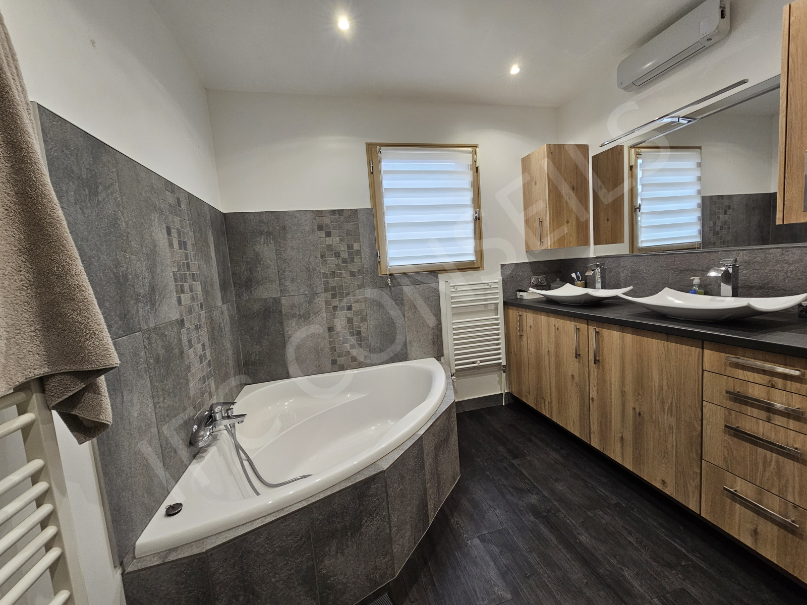 d'ouverture sur l'extérieur et d'être à l'abri des regards. Cette maison très bien pensée vous accueille par une vraie et belle entrée