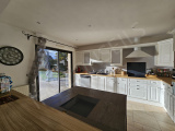 Vous pourrez profitez d'une grande terrasse longeant toute la maison avec une cuisine d'été couverte équipée de plan de travail avec