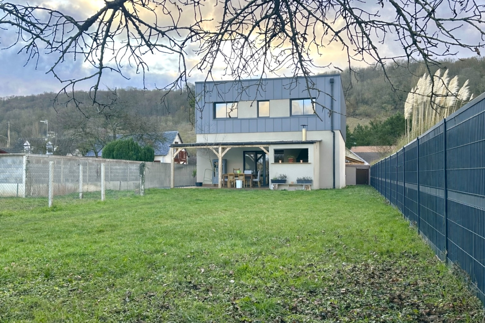 Maison individuelle moderne de 160m2 au Val d'Hazey (Aubevoye) sur 1299m2 de jardin clos et arboré.