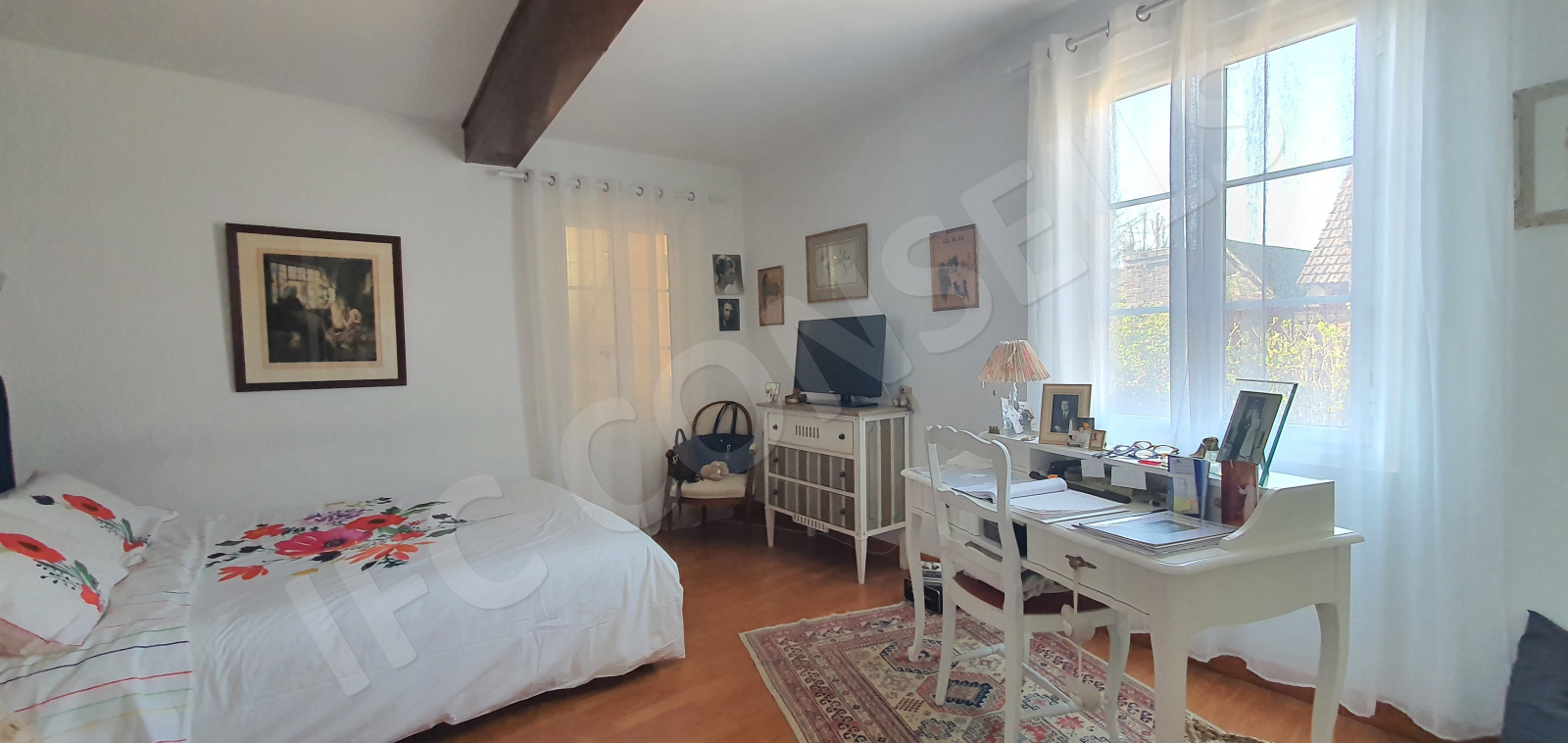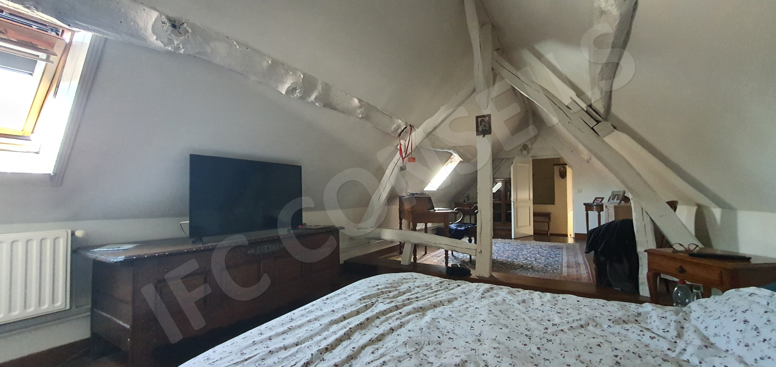 vous y parvenez par des paliers avec placards, une salle d'eau avec wc en parquet massif et 3 chambres dont une aménagée en grand dressing